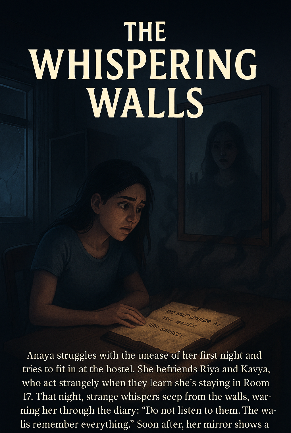 Anaya struggles with the unease of her first night and tries to fit in at the hostel. She befriends Riya and Kavya, who act strangely when they learn she’s staying in Room 17. That night, strange whispers seep from the walls, warning her through the diary: “Do not listen to them. The walls remember everything.” Soon after, her mirror shows a sinister reflection moving on its own, pushing Anaya into terror.